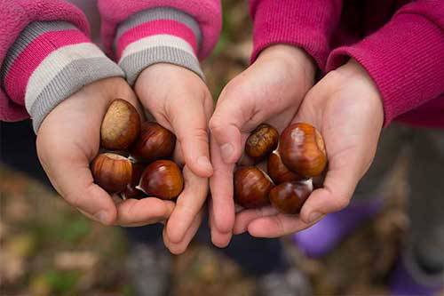 La raccolta manuale si effettua anche in abbinamento ad azioni di attività turistica con giornate organizzate dedicate alla castagna dove per l'occasione si accompagnano gruppi di famiglie o gruppi di scolaresche a passare qualche ora immersi nel castagneto dedicandosi alla raccolta.